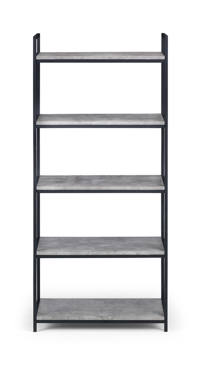 Materials: Metal & MDF {• |||product feature 1}• Black coated metal frame. • Five shelves. • H140 x W63 x D32cm, Weight 17.2kg • x1 Bookcase. • Industrial Chic Design: The Julian Bowen Staten Tall Bookcase features a trendy concrete effect finish, adding an industrial chic vibe to your home decor. Its sleek and modern design makes it a perfect addition to contemporary living spaces, providing both style and functionality. • Ample Storage Space: This tall bookcase offers five spacious shelves, providing ample storage for your books, decorative items, and more. The open design allows for easy access and display of your favorite items, making it a practical and stylish storage solution. • Sturdy Construction: Crafted from high-quality materials, the Staten Tall Bookcase is built to last. The robust construction ensures stability and durability, while the concrete effect finish adds a touch of sophistication. This bookcase is designed to withstand daily use and maintain its beauty over time. • DIMENSIONS: Height 140 x Width 63 x Depth 32cm, Net Weight 17.2kg • WHAT'S INCLUDED: You will receive x1 Bookcase. Full Assembly Required. Level of Assembly Required: Full Assembly Required Build Time: 20.0 $ Total Net Weight: 17.2 Cleaning Instructions: Wipe Clean with Dry Cloth