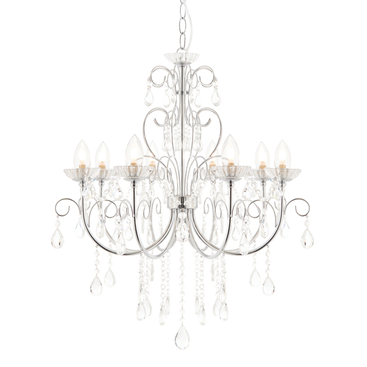 This 5 light semi flush ceiling fitting is finished in a chrome effect plate with clear crystal glass detail and droplets. IP44 rated so suitable for use in the bathroom, dimmable and suitable for use with LED lamps. Matching items available. Material: Crystal Glass / Steel Product Zone: Bathroom Bulb Included: No Bulb Type: 8 x 18W G9 clear capsule Product Lumens: 204 Lumens Per Watt: 11 Kelvin: 2800 Cable Length: 600mm Dimmable: Dimmable Voltage: 220-240V Class: Class 1 IP Rating: 44 Additional Information: H: 830-1300mm