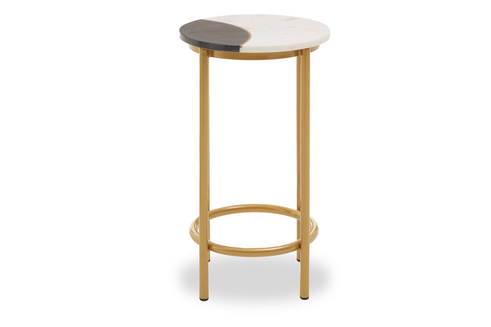 This imitable round side table is a classic design and a lovely addition to any living space. It features a smooth white marble top that is beautifully supported by a brass finished base comprised of four legs and a circular stretcher for stability. materials: Metal, Stone composition:60% Mdf, 40% Stainless Steel Care & Use Instr: Keep the table away from heating vents or radiators to prevent cracking and splitting. Dishwasher Safe: N Electric Hob Safe: N Freezer Safe: N Gas Hob Safe: N Halogen Hob Safe: N Induction Hob Safe: N Materials: Metal, Stone Microwave Safe: N Oven Safe: N Product Depth: 40 Product Height: 65 Product Weight (kg): 6.5 Product Width: 40 Item Assembled: Y