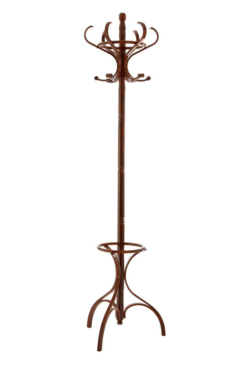 "Wherever you lay your hat, that's your home and with the coat stand you'll be right at home. Freestanding, durable and sturdy, the stand is ideal for keeping next to the front or back door where you can neatly place your jacket, hat or umbrella; helping to keep your home clutter free. With twelve hooks for storing coats, jackets, hats and scarves, and the added bonus of an umbrella holder makes this coat stand not only attractive to look at but very practical for your home. The solid birch wood ensures it's longevity and the walnut finish adds a traditional touch to your home."