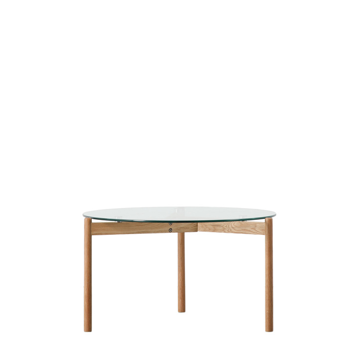 Lovely oak coffee table offering a stunning contemporary style. It features a beautifully designed solid oak base combined with a tempered clear glass top. A matching side table is available, and both are also offered in a black oak finish with a smoked glass top.\n\nThe tables are part of our Packed-Flat Design Project, offering easy delivery to any room in any property, whilst reducing the packaging needed. Easy assembly is required, but all the tools needed are supplied. Material: Tempered Glass / Oak Assembly Required: Yes - full