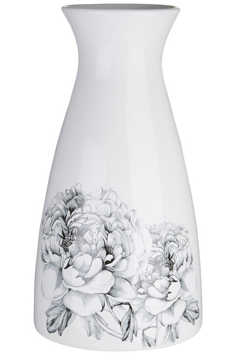 "Delicate in design, the Bloom vase is formed from strong and smooth natural dolomite. Its wide base tapers at the neck before emerging to a wide rounded rim, ideal for displaying an arrangement of flowers. Etched black petals, buds and stalks blossom across its clean white surface. An understated accent piece for a console table or sideboard." materials: Ceramic composition:Dolomite 100% colour: Black, White Care & Use Instr: Clean With Soft Dry Fabric Dishwasher Safe: N Electric Hob Safe: N Freezer Safe: N Gas Hob Safe: N Halogen Hob Safe: N Induction Hob Safe: N Materials: Ceramic Microwave Safe: N Oven Safe: N Product Depth: 16 Product Height: 31 Product Weight (kg): 1.43 Product Width: 16 Item Assembled: Y Courier Service: Evri Packet