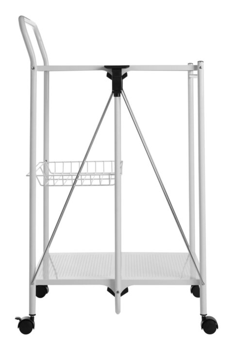 "This kitchen trolley will be a handy addition to the kitchen. Its two shelves are ideal for storing kitchenware and food, while a useful basket is ideal for smaller items. The top shelf can also be used to prepare food, while its caster wheels make it easy to transport. Made from robust metal, this trolley can be easily folded away." materials: Synthetic, Synthetic, Metal composition:Metal, Stone Care & Use Instr: Wipe clean with a damp cloth Dishwasher Safe: N Electric Hob Safe: N Freezer Safe: N Gas Hob Safe: N Halogen Hob Safe: N Induction Hob Safe: N Materials: Synthetic, Synthetic, Metal Microwave Safe: N Oven Safe: N Product Depth: 47 Product Height: 92 Product Weight (kg): 4.57 Product Width: 56 Item Assembled: N