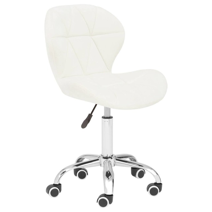This white velvet office chair features a curved ergonomic seat with decorative quilted detail. The plush velvet seat with triangular texture rests above a swivel base with hooded castor wheels offering swift manoeuvrability. materials: Textile, Metal, Synthetic composition:Synthetic, Textile, Metal Care & Use Instr: Wipe clean with a damp cloth Dishwasher Safe: N Electric Hob Safe: N Freezer Safe: N Gas Hob Safe: N Halogen Hob Safe: N Induction Hob Safe: N Materials: Textile, Metal, Synthetic Microwave Safe: N Oven Safe: N Product Depth: 55 Product Height: 98 Product Weight (kg): 6.6 Product Width: 49 Item Assembled: N