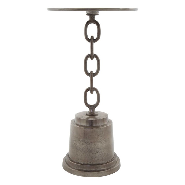 Crafted from aluminium, this large side table features a distinctive chain design with a round top, supported by a pedestal base. The black nickel finish gives the table a subtle texture while the tiered base creates a decorative touch. materials: Metal composition:Metal, Wood Care & Use Instr: Wipe Clean With A Soft Cloth. Do Not Use Abrasive Cleaners. Dishwasher Safe: N Electric Hob Safe: N Freezer Safe: N Gas Hob Safe: N Halogen Hob Safe: N Induction Hob Safe: N Materials: Metal Microwave Safe: N Oven Safe: N Product Depth: 38 Product Height: 70 Product Weight (kg): 5.68 Product Width: 38 Item Assembled: Y