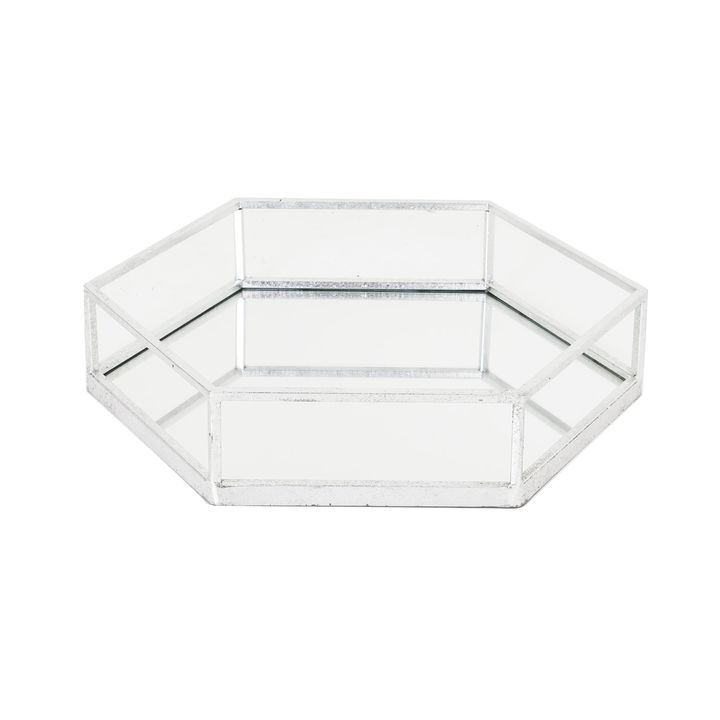 Sophisticated and versatile, these Silver Hexagon Trays are a standout addition to any home décor collection. The set of two features a sleek silver finish and delicate mesh detailing, blending modern geometry with timeless charm. Their hexagonal shape offers a contemporary edge, while varied sizes provide flexible display options. These trays excel in both form and function, perfect for showcasing curios or serving drinks with flair. Their minimalist design harmonizes with diverse interior styles, from industrial to Scandinavian. Pairing suggestions include metallic accents for cohesion or soft textiles for contrast. Multifunctional and stylish, they shine on coffee tables, vanities, or as wall-mounted art. Recommend creative uses to customers - from organizing cosmetics to displaying succulents or corralling keys in entryways. Built to last with premium materials, these trays represent a wise addition to your inventory. Appeal to design-savvy shoppers with this versatile set that promises to add a touch of refined glamour to any space.