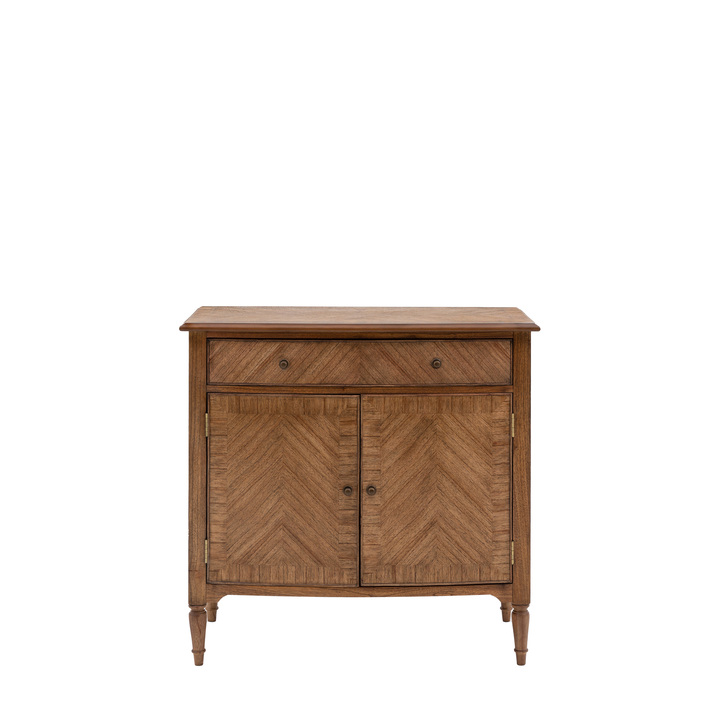 This stunning sideboard features rich tonal mid brown Mindy wood veneer marquetry and bronze beehive pull handles , creating a beautiful ‘new traditional’ look. With its timeless, elegant style and a modern touch the 2-door cupboard and 1 drawer make it a practical yet stylish storage solution. Material: Mindi / Mindi Veneer / MDF Product Zone: Indoor Leg Finish: Laquered Clearance to Floor: 170mm Storage: 2 Door / 1 Drawer Internal Drawer Size: W850 x D423 x H128mm Internal Cupboard Size: W850 x D423 x H530mm Adjustable Shelves: Yes Distance between shelves: Adjustable Shelves Assembly Required: Leg / Foot Only Anti Topple Kit: Yes