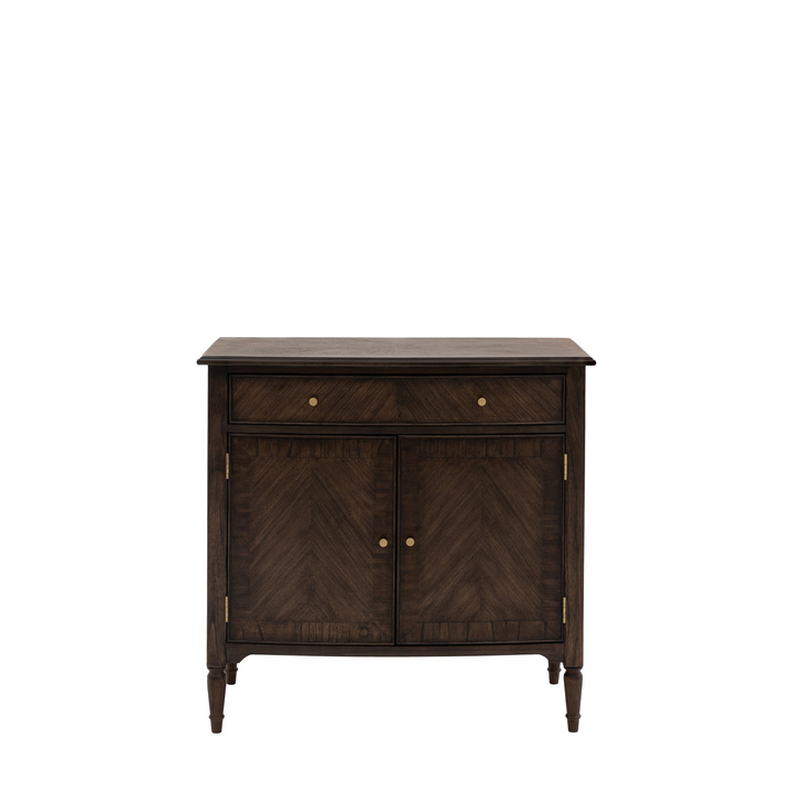 This stunning sideboard features stunning dark salvaged coffee coloured Mindy wood solids & veneers with inlaid marquetry and book-matched details. Offering a ‘new traditional’ look, with its timeless, elegant style with a modern touch. The large 2-door cupboard and 1 drawer are finished with satin brass handle pulls making it a practical yet stylish storage solution. Material: Mindi / Mindi Veneer / MDF Product Zone: Indoor Leg Finish: Laquered Clearance to Floor: 170mm Storage: 2 Door / 1 Drawer Internal Drawer Size: W850 x D423 x H128mm Internal Cupboard Size: W850 x D423 x H530mm Adjustable Shelves: Yes Distance between shelves: Adjustable Shelves Assembly Required: Leg / Foot Only Anti Topple Kit: Yes