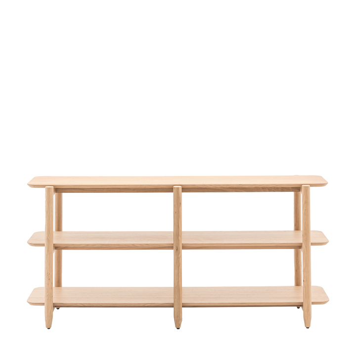 This open display in natural is a stylish and functional addition to any room. Its clean lines and oak construction create a minimalist and modern look. The five spacious shelves offer ample storage space for books, plants, or decorative items. Perfect for adding a touch of Scandinavian style to your home. Material: Oak Veneer / MDF / Oak / Rubber Wood Product Zone: Indoor Leg Material: Oak Veneer Clearance to Floor: 97mm Storage: 4 Shelves Internal Cupboard Size: W272 x D300 x L1180mm Adjustable Shelves: Fixed Distance between shelves: 272mm Assembly Required: Yes - Full Assembly Anti Topple Kit: Yes
