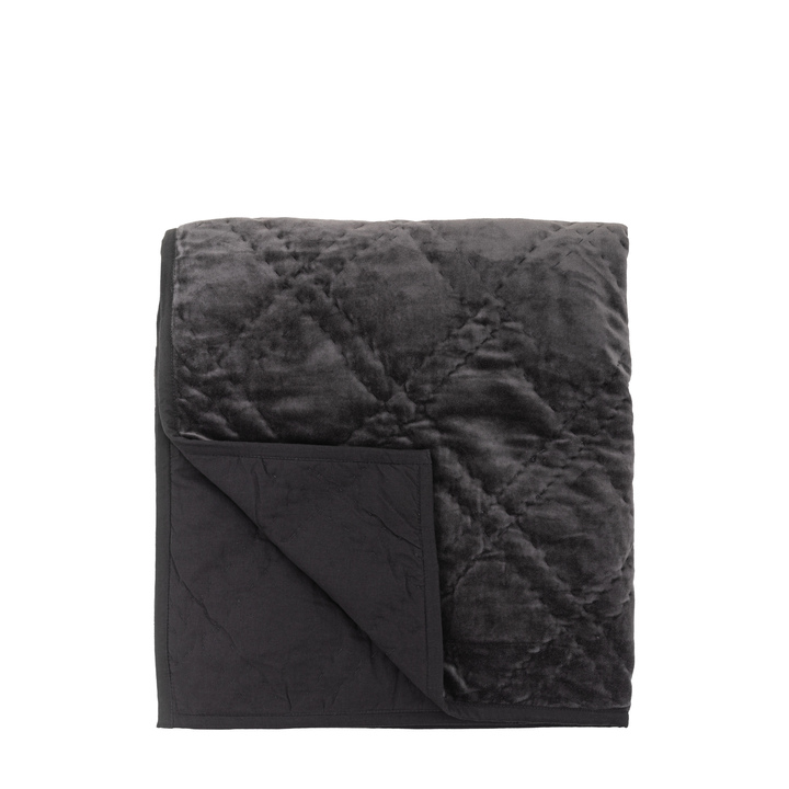 Luxuriously soft cotton velvet hand quilted bedspread in charcoal with a coordinating cotton reverse. Featuring a twin stitched contemporary diamond quilted design. Available in 2 colourways and in matching cushions Material: Cotton / Polyester Filling Fabric Weight: 360 gsm Filling - SOFT FURN: Polyester Care Instructions - Textiles: Max. Wash 30 Degrees - Gentle Cycle / Do Not Bleach / Tumble Dry Low/ Do Not Iron / Do Not Dry Clean