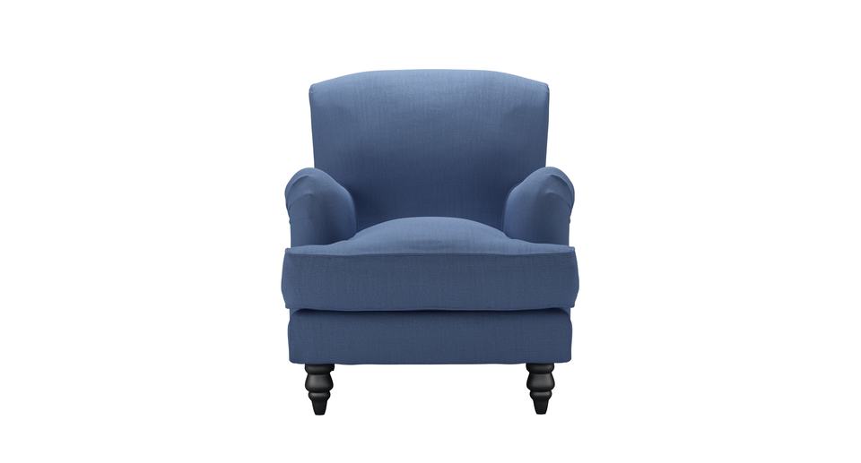 Snowdrop Small Armchair in Oxford Blue Brushed Linen Cotton