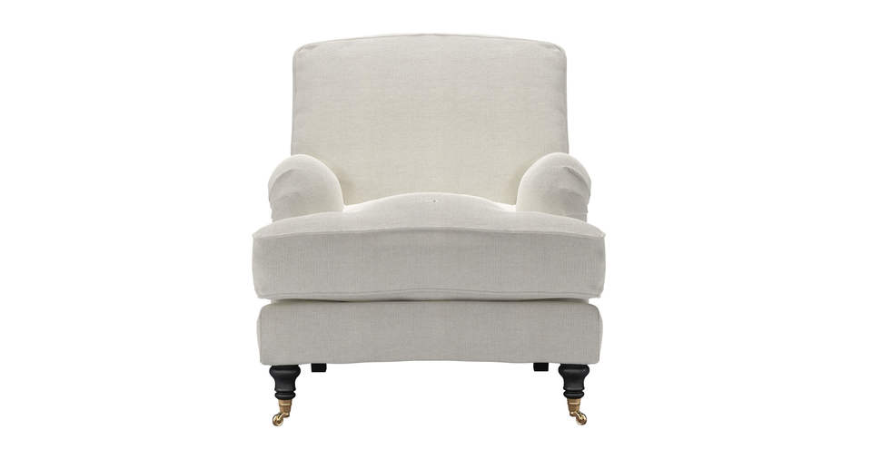 A classic design and one of our most popular sofas. back cushions: feather and fibre color: natural covers: fixed seat cushions: feather wrapped foam size: Armchair