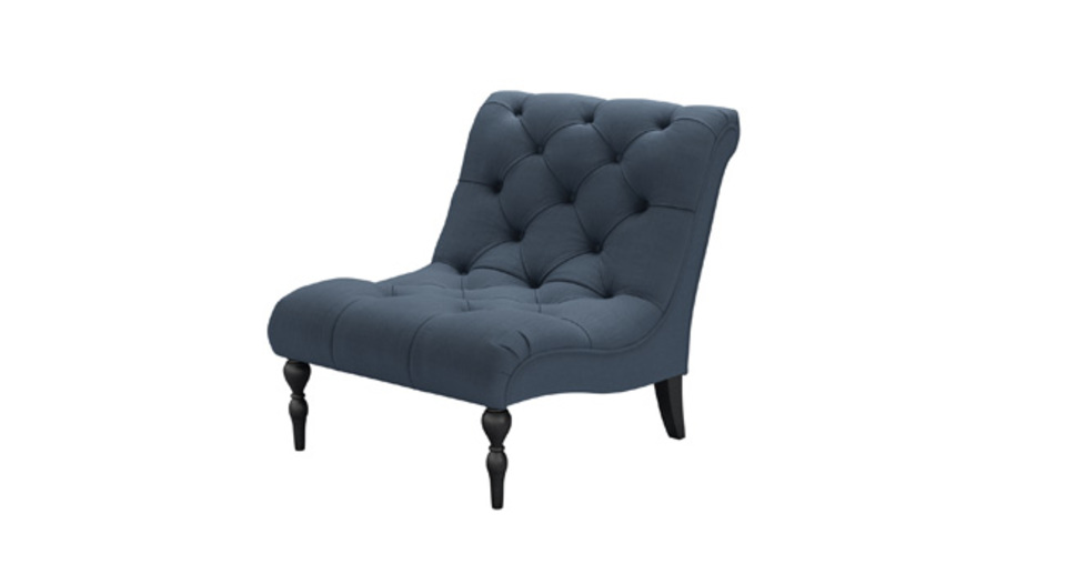 A buttoned and tufted seat of pure joy. back cushions: see website color: blue covers: see website seat cushions: see website size: Armchair