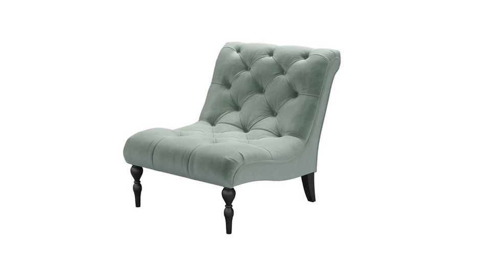 A buttoned and tufted seat of pure joy. back cushions: see website color: green covers: see website seat cushions: see website size: Armchair
