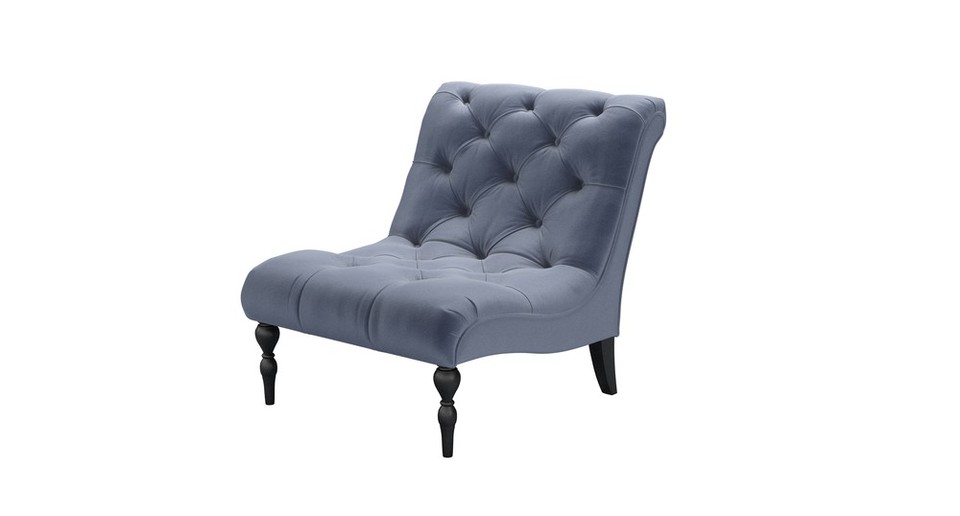 A buttoned and tufted seat of pure joy. back cushions: see website color: blue covers: see website seat cushions: see website size: Armchair
