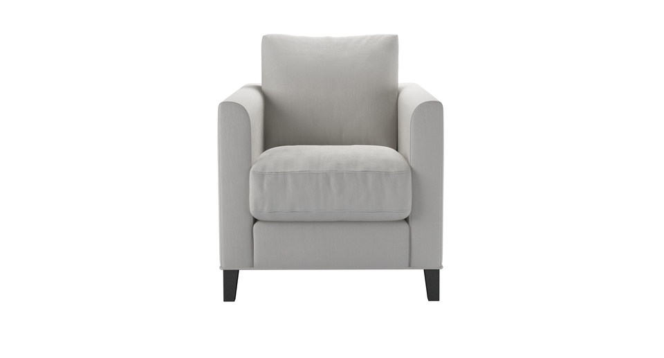 The Izzy's modest and contemporary style is perfect for practical and simple living. A straight-edged frame, with structured arms, plump cushions and tall oak legs make this one comfy sofa! Its slender arms with a gentle curve add an air of charm to the minimalist design. back cushions: feather and fibre color: natural,white covers: fixed seat cushions: feather wrapped foam size: Armchair