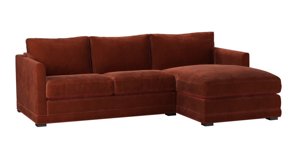Aissa Small RHF 2 Seat Storage Chaise Sofa bed in Deep Coral Cashmere Velvet