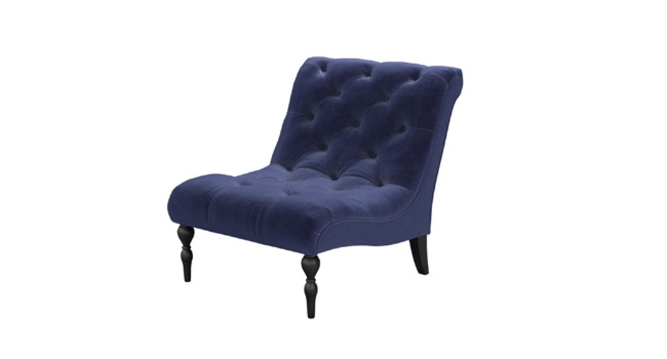 A buttoned and tufted seat of pure joy. back cushions: see website color: blue covers: see website seat cushions: see website size: Armchair
