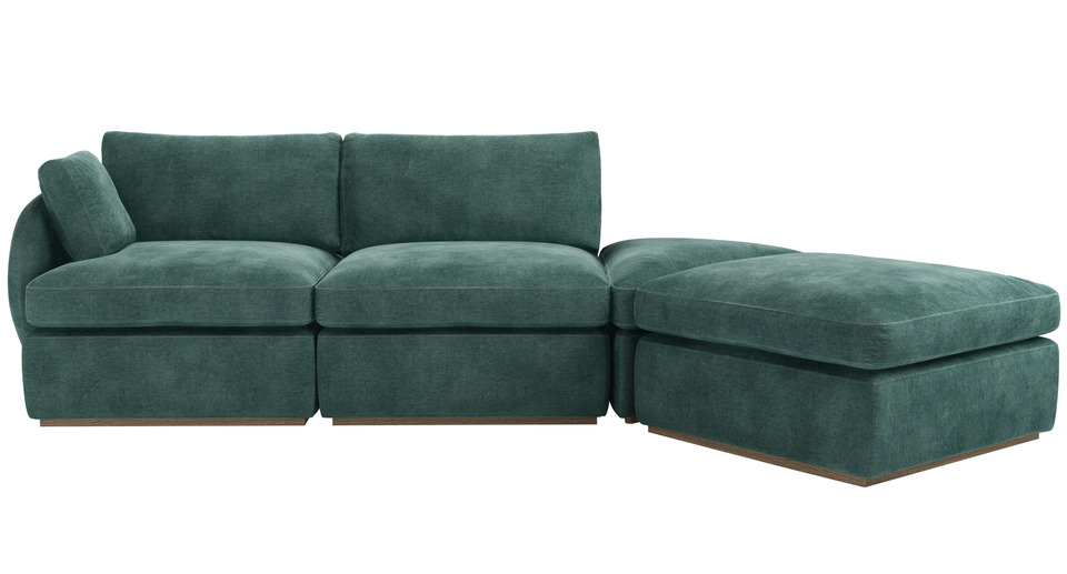 Unique wraparound curved arms make the Ren a statement sofa, inspired by 70s style. Its modular design makes it ultra versatile, so you can adapt the size and style to suit your home. Add in a wedge module to create a rounded configuration or opt for a footstool for an L shape form, the possibilities are endless. Sink into ultimate comfort with feather and fibre filled back cushions with ample seating depth for you to lounge in style. back cushions: see website color: green covers: see website seat cushions: see website size: LHF Modular Sofa