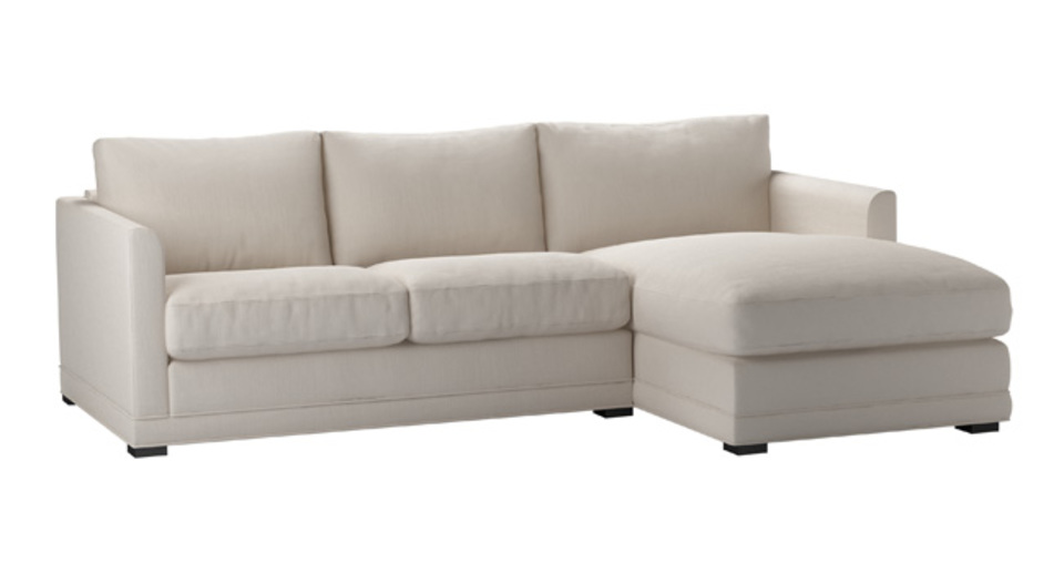 A sofa made for corners. back cushions: feather and fibre color: natural covers: fixed seat cushions: feather wrapped foam size: Small Right Hand Chaise