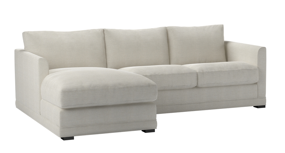 A sofa made for corners. back cushions: feather and fibre color: natural covers: fixed seat cushions: feather wrapped foam size: Small Left Hand Chaise