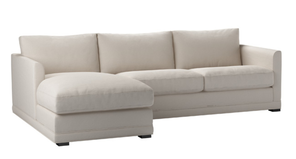 A sofa made for corners. back cushions: feather and fibre color: natural covers: fixed seat cushions: feather wrapped foam size: Medium Left Hand Chaise