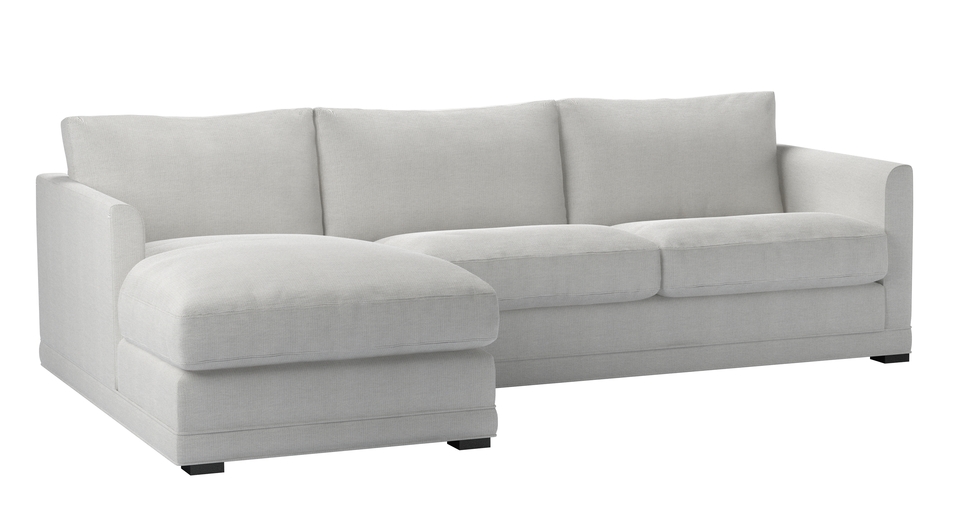 A sofa made for corners. back cushions: feather and fibre color: natural,white,grey covers: fixed seat cushions: feather wrapped foam size: Medium Left Hand Chaise