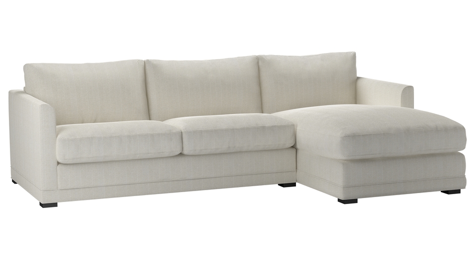A sofa made for corners. back cushions: feather and fibre color: natural covers: fixed seat cushions: feather wrapped foam size: Medium Right Hand Chaise