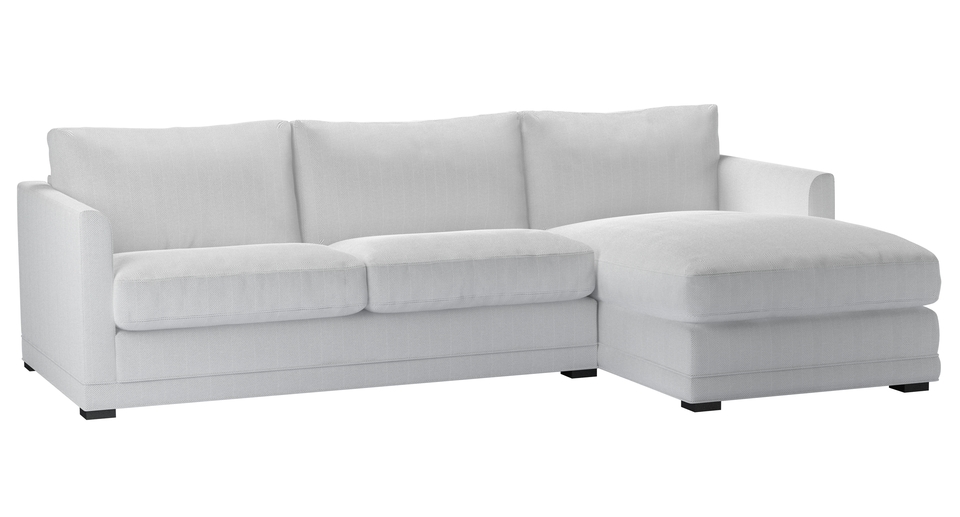 A sofa made for corners. back cushions: feather and fibre color: natural,white,grey covers: fixed seat cushions: feather wrapped foam size: Medium Right Hand Chaise