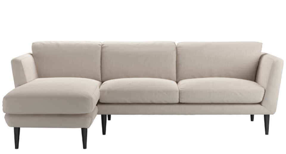 The Holly's retro-inspired shape and simple elegance is a nod to the sleek and curvy mid-century style. A neat frame - with high, splayed arms, a deep seat, and lots of comfy cushions - sits on tall tapered legs. This is one cool sofa. back cushions: 100% feather color: natural covers: fixed seat cushions: feather wrapped foam size: Left Hand Chaise