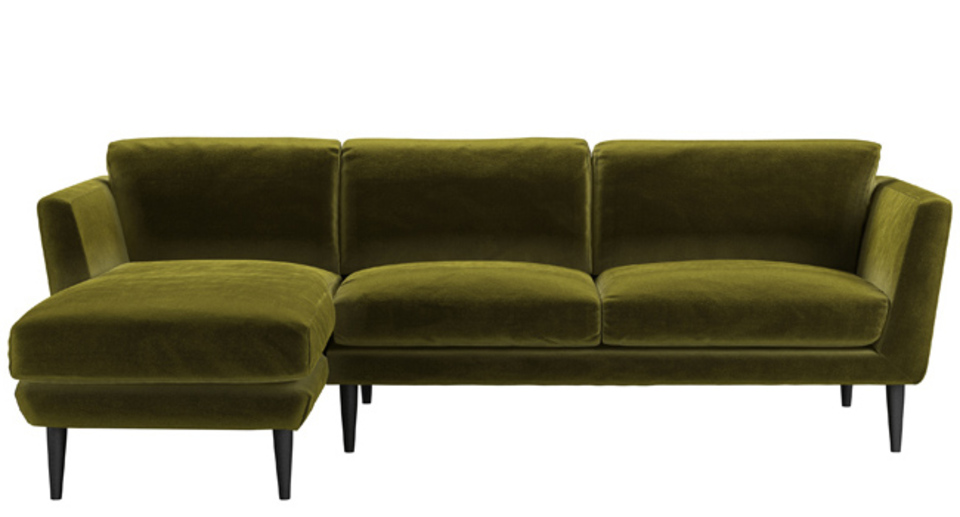 Holly Medium LHF Chaise Sofa in Olive Cotton Matt Velvet