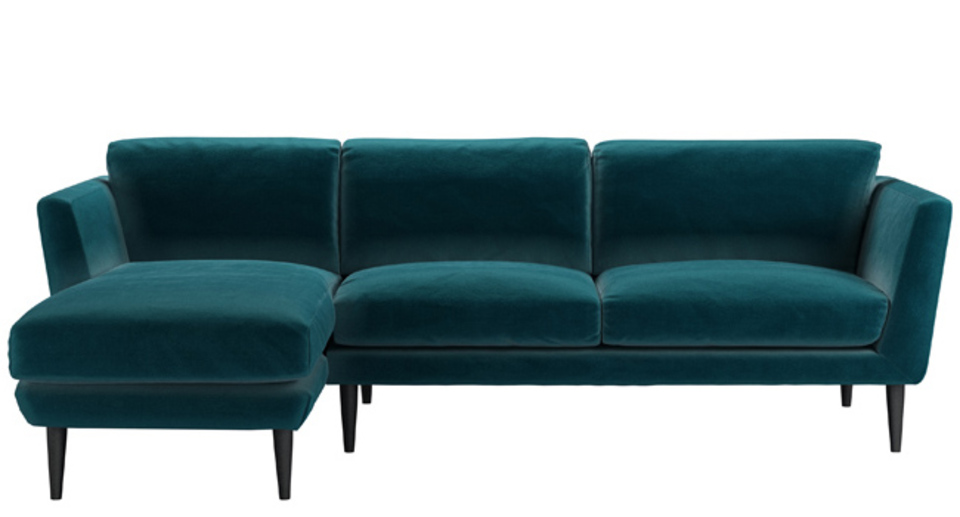 Holly Medium LHF Chaise Sofa in Deep Turquoise Cotton Matt Velvet
