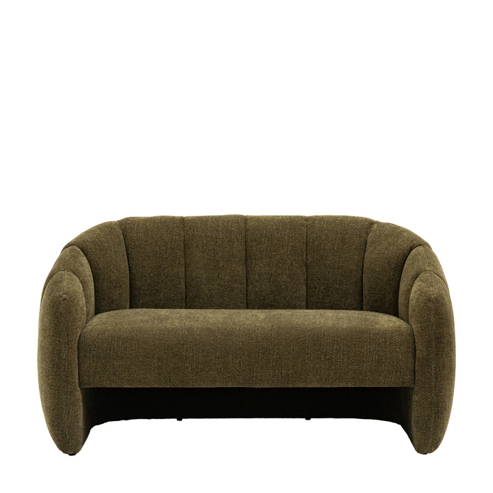 This sofa combines contemporary design with exceptional comfort, featuring a curved silhouette, channel-tufted upholstery, and plush cushioning. Upholstered in a rich, earthy fabric, it brings a sophisticated yet inviting touch to any space. Material: Fibre / Foam / Plywood / Polyester Product Zone: Indoor Seat Height: 400mm Seat Width between arms: 1120mm Seat Depth: 500mm Assembly Required: No