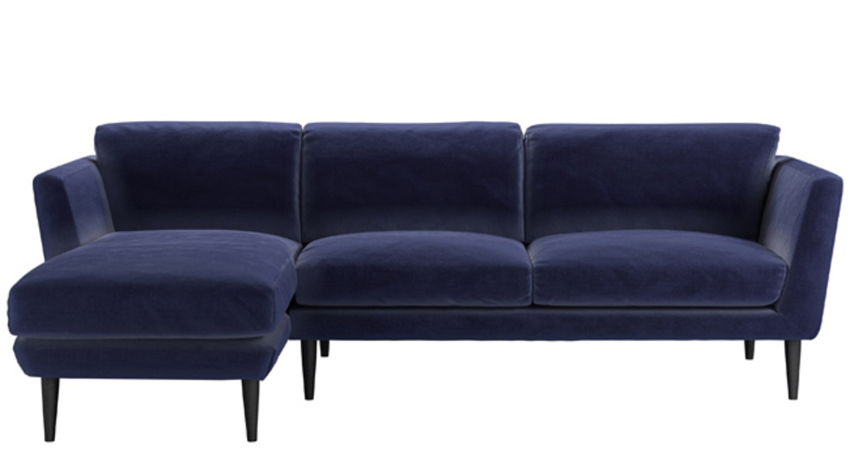 Holly Medium LHF Chaise Sofa in Prussian Blue Cotton Matt Velvet