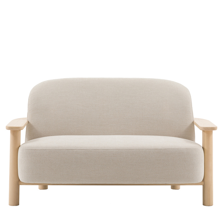 This 2 seater sofa brings considered craftsmanship and contemporary design to modern living. The pale neutral, deep upholstered seat sits on a refined, light wood frame, effortlessly balancing comfort and contemporary design. Material: Ash / Plywood / Fabric / Foam / Polyester Fibre Seat Height: 435mm Seat Width between arms: 1145mm Seat Depth: 545mm Leg / Feet Height: 170mm Clearance to Floor: 170mm Assembly Required: No