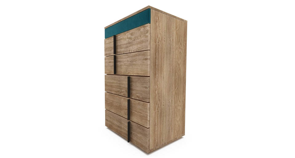 Sorrento Five Drawer Chest of Drawers in Deep Turquoise Pure Cotton Matt Velvet