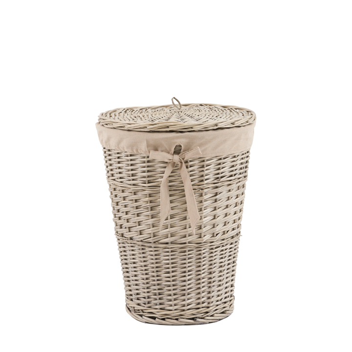 Sort the laundry away with this round woven basket. Big enough to contain all your laundry and lined in breathable cotton the basket is lidded to keep everything tidy. Material: Willow / Cotton Product Zone: Indoor