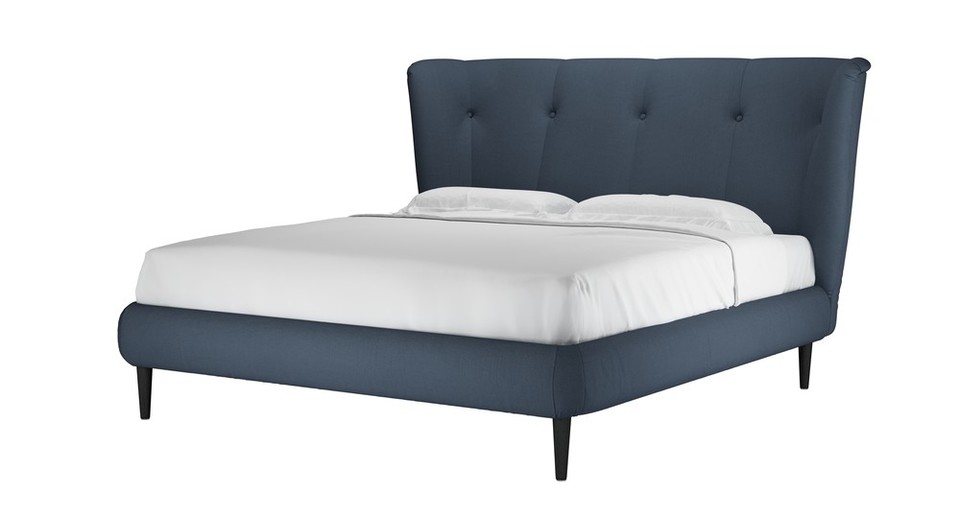 Audrey Super King Bed in Midnight Blue Brushed Linen Cotton