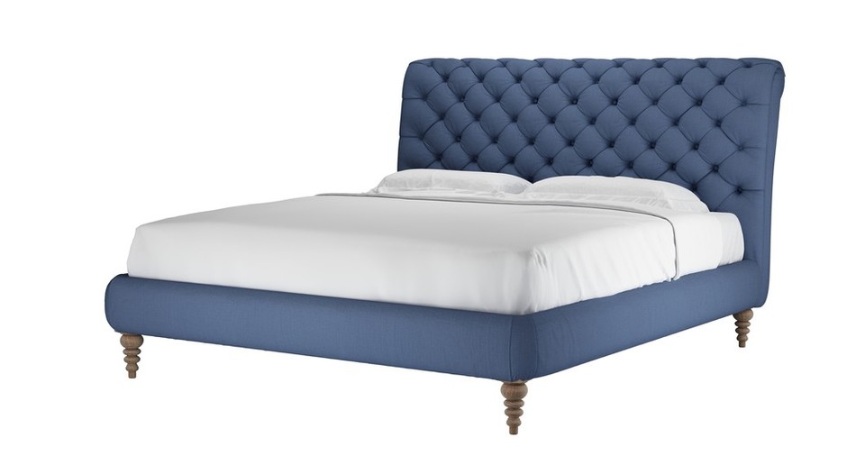 A chesterfield inspired masterpiece. back cushions: see website color: blue covers: see website seat cushions: see website size: Super King Size Bed