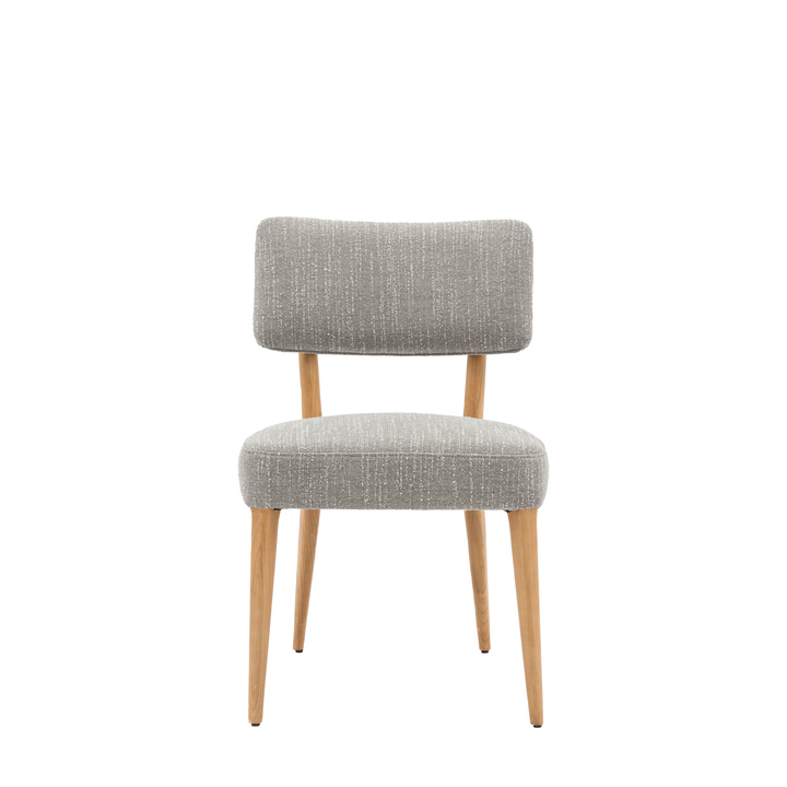 A sleek and versatile dining chair with a mid-century modern aesthetic, featuring a textured fabric upholstered seat and backrest, complemented by elegantly tapered wooden legs. A perfect blend of comfort and style for dining or workspaces. Pack Of: 2 Material: Ash / Foam / Plywood / Poly Fibre - Filling / Polyester Product Zone: Indoor Seat Height: 485mm Seat Width between arms: 510mm Seat Depth: 440mm Clearance to Floor: 360mm