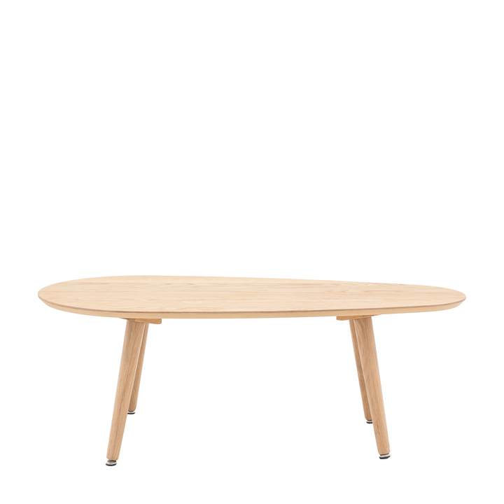 The Hatfield Coffee Table is a unique and stylish addition to any living space. Its organic, oval shape and solid oak construction create a warm and inviting atmosphere. The tapered legs add a touch of Scandinavian minimalism, while the natural wood finish complements a variety of interior styles. Perfect for relaxing with a book or entertaining guests. Material: Oak Veneer / MDF / Oak / Rubber Wood Product Zone: Indoor Leg Material: Oak Veneer Clearance to Floor: 331mm Assembly Required: Yes - Legs Only