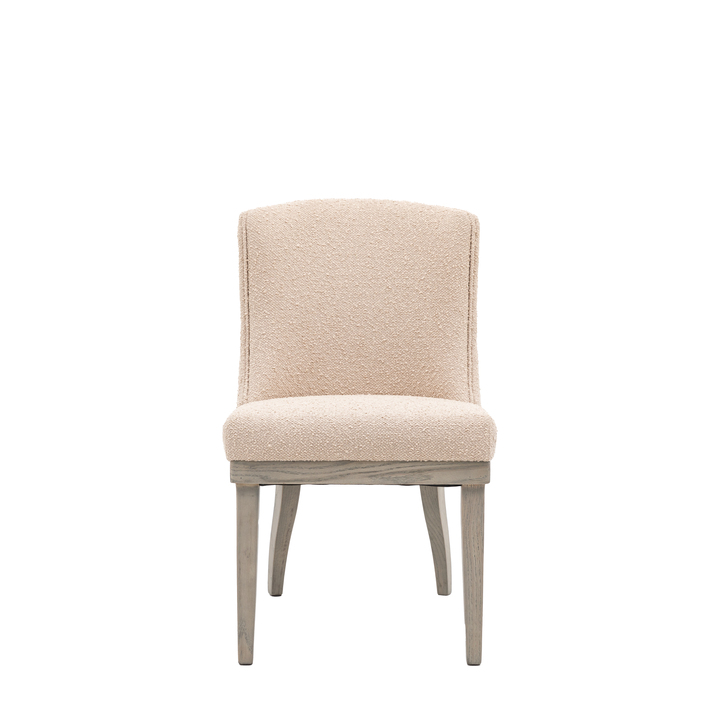 Add a touch of traditional style with a contemporary twist to a room with these lovely dining chairs which come in a pack of two. The seats and gently curved backs are fully upholstered in lovely natural boucle fabric which pairs perfectly with the elegant wooden legs. Pack Of: 2 Material: Ash / Polyester / Foam / Polyester Fiber Product Zone: Indoor Seat Height: 475mm Seat Width between arms: 520mm Seat Depth: 450mm Leg / Feet Height: 345mm Clearance to Floor: 345mm Assembly Required: No
