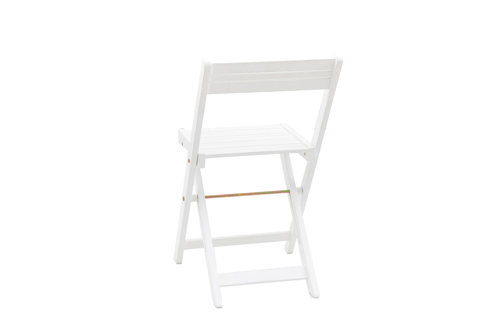 Combining practicality and style this dining set folds away for easy storage or transportation. This elegantly simple white dining set comes complete with the folding slatted top dining table and folding 4 chairs. Material: Acacia Product Zone: Outdoor Additional Information: Clearance To Floor: Table: 720 / Chair: 430 Shape - OTDR: Rectangle Set includes - OTDR: 4 x Folding Chair: W420 x D480 x H770 mm / 1 x Folding Dining Table: W1100 x D700 x H740 mm Seat Height - OTDR: 450 Seat Width between arms - OTDR: 375 Seat Depth - OTDR: 310 Seats - OTDR: 4 Hanging Orientation - OTDR Mirror: Hanging and Stand Fixing Type - OTDR Mirrors: Decorative Metal Chain Assembly Required - OTDR: Folding