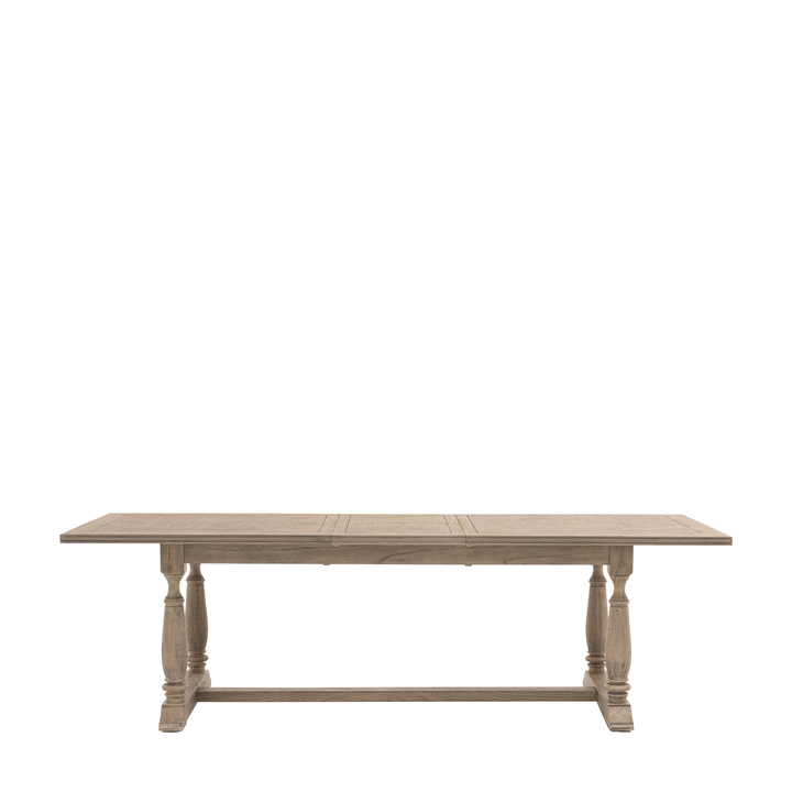 This collection is made from Mindy wood and lightly brushed to recreate the natural ageing of a beach side veranda, open to the elements of sun and sand. The design and finish has a nod towards French Colonial style but would equally suit a modern interior. this extending dining table adapts to your needs extending from 2000 to 2500 x1000x750mm Material: Mindy Ash Shape: Rectangle Seats - Table / Bench: 8-10 Clearance to Floor: 625mm Assembly Required: Yes Additional Information: Extended Size 2500mm