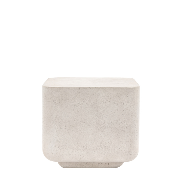 This stunning contemporary side table is created using GRC moulded technology and is finished to the highest standard, in an on trend concrete look. Matching coffee table available. Material: Glass Fibre Reinforced Concrete Assembly Required: No Additional Information: The use of GRC (Glass Reinforced Concrete) enables the creation of distinctive organic shapes, with a finish that features a subtle texture and natural pitting, adding to the unique character of this original collection.