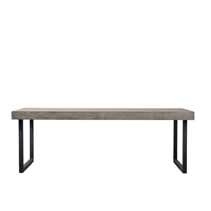 This rectangle dining table offers a stunning contemporary design, the table top is crafted from acacia whilst the base is powder coated iron. Material: Acacia / Iron Product Zone: Outdoor Additional Information: The product can experience natural settlement in the solid timber as it acclimatises to its new surroundings. This can result in minor cracks to the finish. Shape - OTDR: Rectangle Seats - OTDR: 8 Clearance to Floor - OTDR: 650mm Hanging Orientation - OTDR Mirror: Hanging and Stand Fixing Type - OTDR Mirrors: Decorative Metal Chain Assembly Required - OTDR: Yes