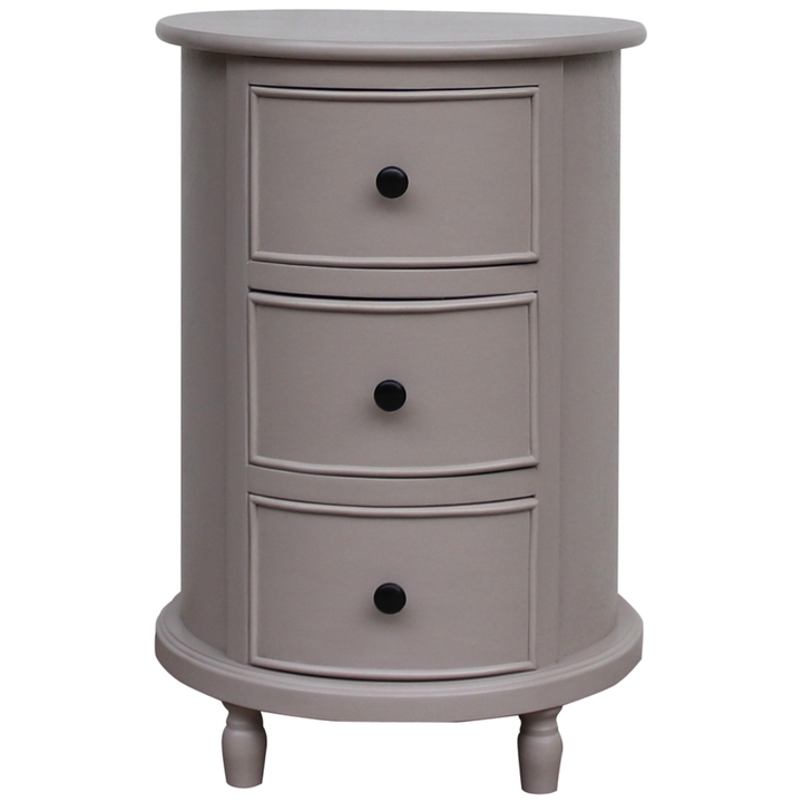A distinctive circular side table that delivers modern functionality with refined style. This three-drawer piece from the Camden Collection showcases intelligent design through its balanced proportions and considered details. The round silhouette creates an inviting focal point while maximising space efficiency in any room setting. Its carefully considered construction demonstrates superior attention to detail, from the precise drawer alignment to the smooth-operating mechanisms that ensure lasting reliability. The measured scale makes it perfectly suited to both compact spaces and larger rooms, offering practical storage without compromising on visual appeal. As part of the wider Camden Collection, this side table coordinates seamlessly with other pieces in the range while maintaining its own unique identity. For retailers looking to create compelling visual merchandising opportunities, consider pairing with decorative table lamps, artisanal vases, or curated objets d'art from complementary collections. The neutral palette and considered proportions allow it to harmonise with both contemporary and traditional accessories, making it an advantageous addition to any retail offering. Its commercial appeal lies in its ability to satisfy customers seeking furniture that combines practicality with refined aesthetics, making it a reliable seller across diverse market segments.
