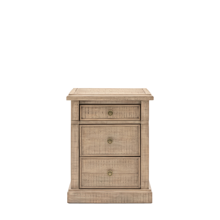This 3 drawer bedside is a charming and practical addition to any bedroom. Its weathered wood finish and simple design create a warm and inviting atmosphere. The three drawers provide ample storage space for books, glasses, and other bedside essentials. Perfect for adding a touch of rustic charm to your space. Material: Solid Pine Wood / Pine Veneer / Plywood Product Zone: Indoor Leg / Feet Height: 135mm Clearance to Floor: 135mm Storage: 3 Drawers Internal Drawer Size: Top Drawer: W324 x D320 x H62mm / Middle & Bottom Drawer: W324 x D320 x H137mm Assembly Required: No