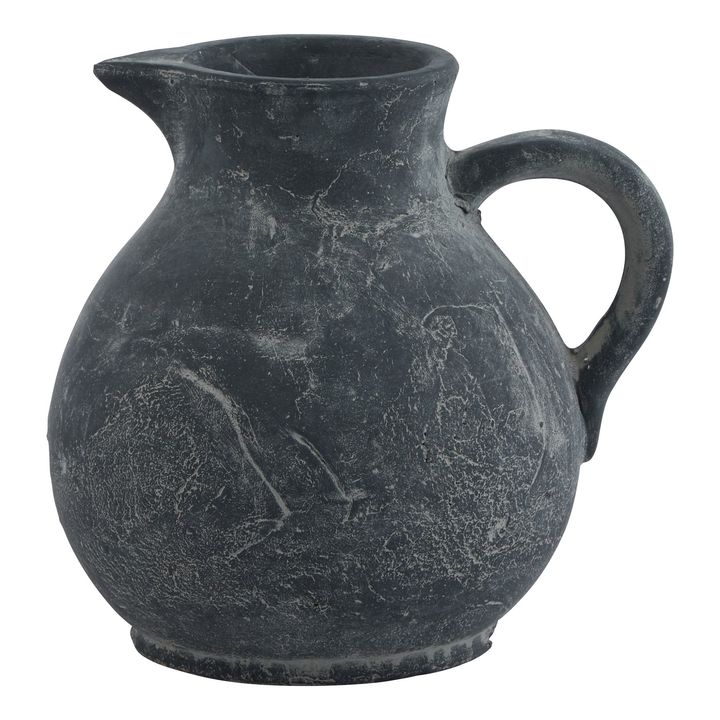 Bring timeless Mediterranean charm to your collection with this striking Amalfi grey jug. Masterfully crafted with a distressed, textural finish that mimics ancient stone vessels, this decorative piece offers both rustic character and sophisticated appeal. The graceful curved silhouette and substantial handle echo traditional water vessel designs from Italy's Amalfi coast. Perfect as a standalone statement or filled with dried pampas grass and botanicals, this versatile jug adapts beautifully to multiple interior styles. It pairs exceptionally well with natural linens, weathered woods, and neutral palettes typical of modern farmhouse, coastal, and contemporary rustic décor.