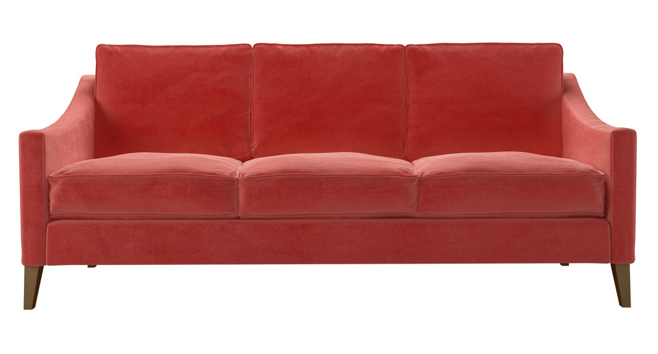 Slender, sleek and beautifully proportioned. back cushions: 100% feather color: pink covers: fixed seat cushions: feather wrapped foam size: Three Seat Sofa